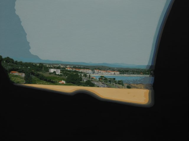 Take one more glance at Argelès-sur-Mer, through the back left window, oil on canvas, 2018.