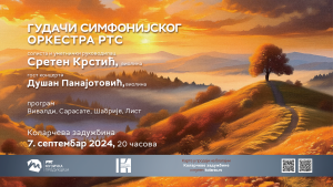 Pozivamo vas na koncert Gudača Simfonijskog orkestra RTS, koje će predvoditi čuveni violinista Sreten Krstić. Ovim koncertom, Gudači Simfonijskog orkestra RTS nastaviće sezonu u temperamentnom ritmu muzike Antonija Vivaldija, Pabla de Sarasatea, Emanuela Šabrijea i Franca Lista.
